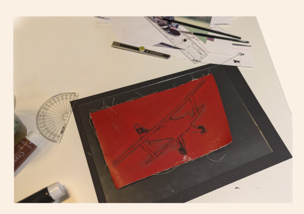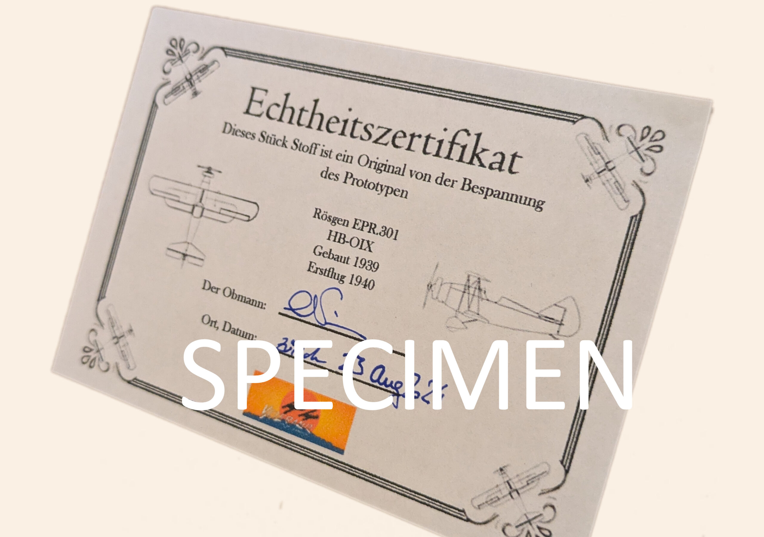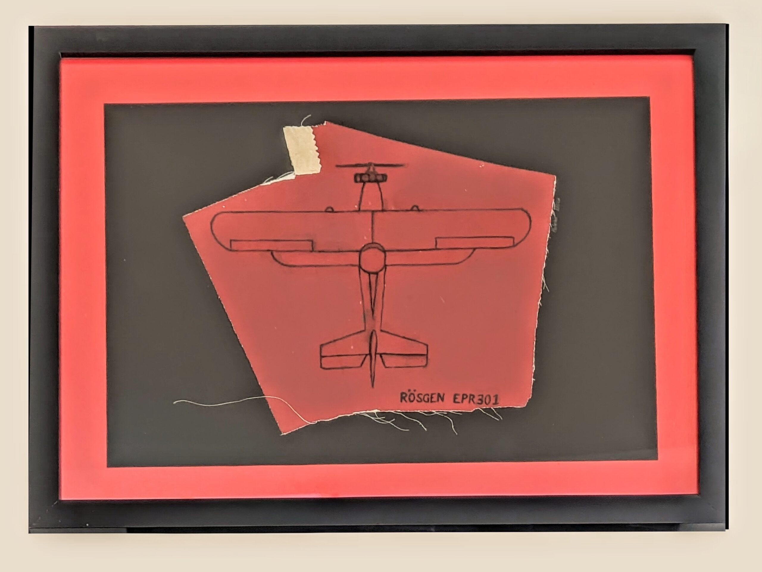 Handgemaltes Bild des Rösgen EPR.301 auf original Bespannung. Schwarzer Rahmen. Dieses Bild ist eine Draufsicht des Rösgen, mit dem Sternmotor wie er original im Jahre 1939 eingebaut wurde. Das Stück der Bespannung zeigt eine Naht, welche die Handwerkskunst beim Bespannen von Flugzeugen aufzeigt. Jedes Bild ist ein Unikat, handgemalt von Malvina Nicca. Format ca 20x30cm. Jeder Rappen wird zum Wiederaufbau des Rösgen verwendet. Jede Unterstützung ist sehr wertvoll, um dieses Unikat der Schweizer Geschichte zu erhalten.